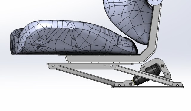 A design was requested for a new, low-cost suspension seat base for use by recreational boaters. The design goals were to maximize performance while minimizing size, to maintain a flat top surface, and to utilize a bicycle spring and damper.