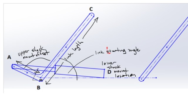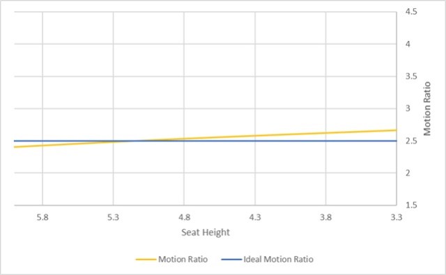 I created several initial designs and analyzed the geometry of each to derive equations of motion. These equations were plotted in Excel to observe the motion ratio of the seat and spring/damper for the range of seat travel. I chose the design with the most favourable motion ratio, and optimized its geometry by using an optimizing evolutionary algorithm in Excel to maximize motion ratio consistency and minimize overall size, within a given set of geometric constraints.